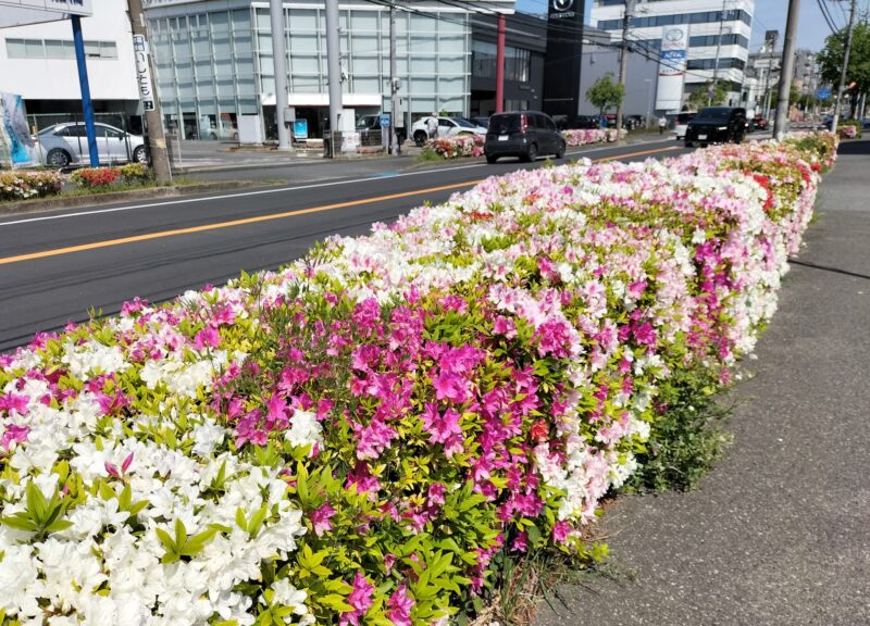 市場通りの沿道には、色とりどりの花々が咲き香って、行き交う人々の笑顔を誘っています。