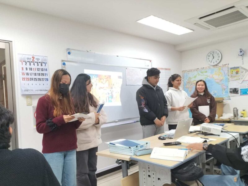 2月25日には、2Bクラスの発表試験が行われ、様々な食文化についてグループごとに調査結果を発表し合いました。
